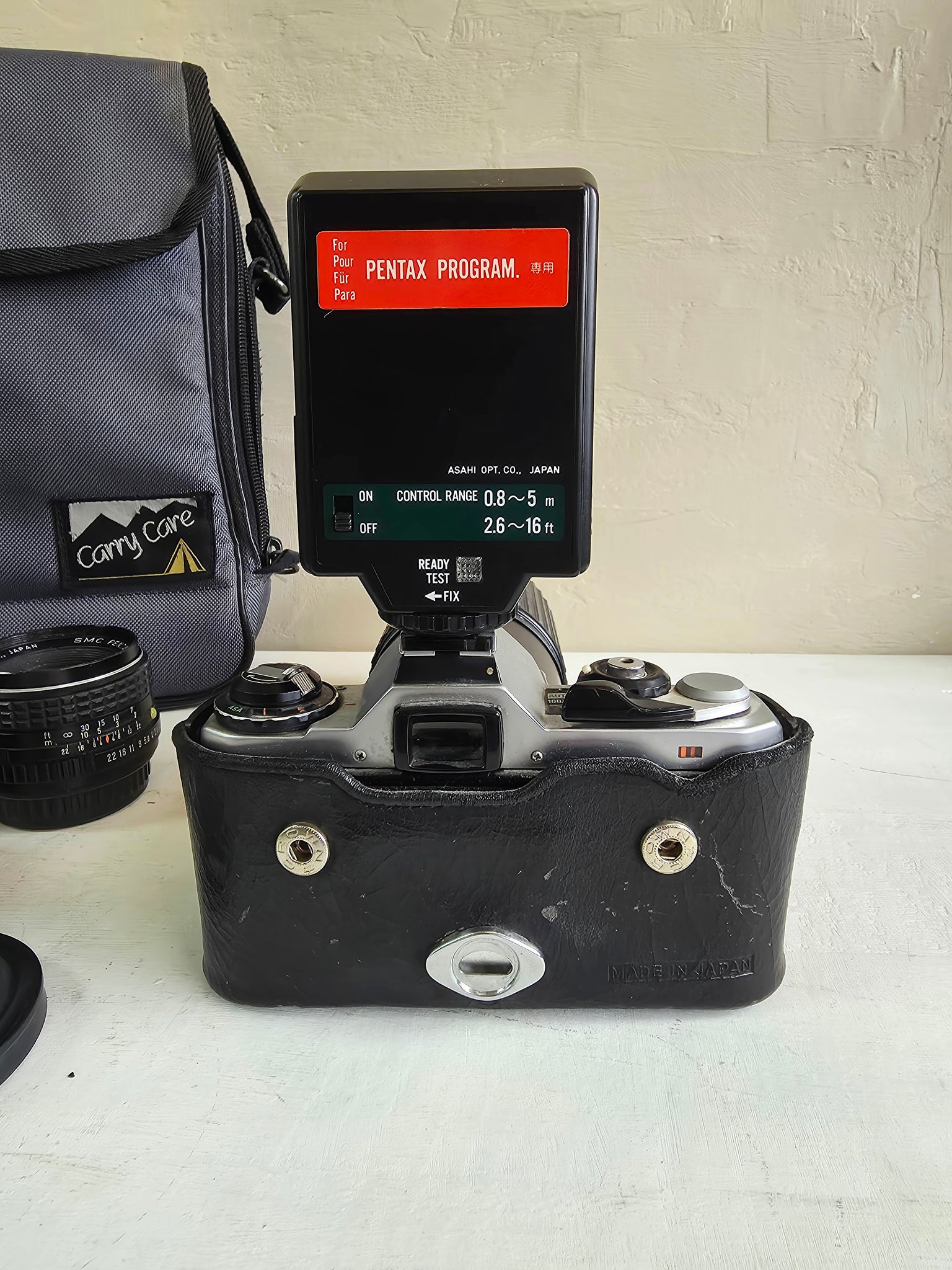Pentax ME Super 35mm SLR Camera + 70-200m Zoom, 50mm Lens & Flash Kit .
