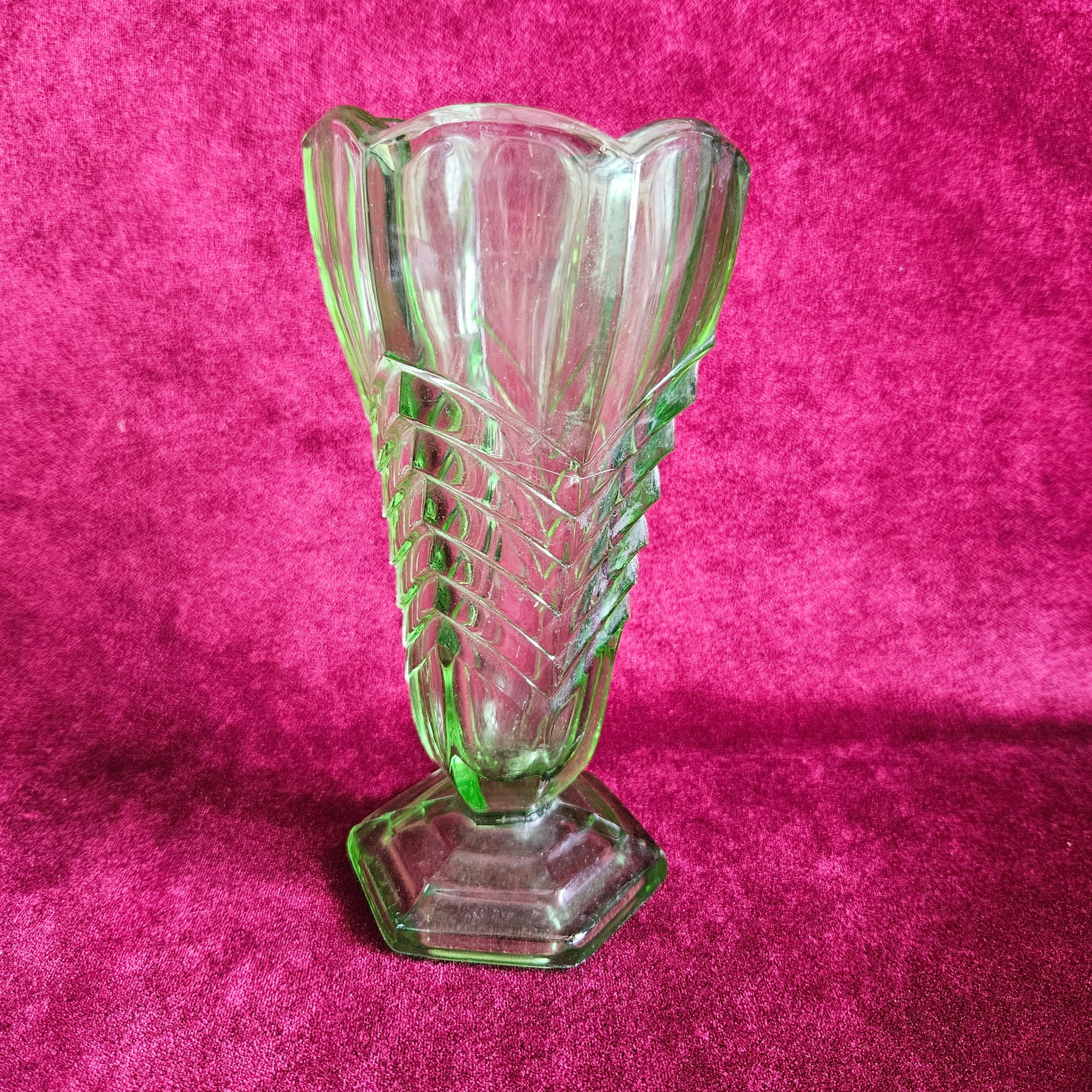 Art Deco Emerald Green Pressed Glass Vase