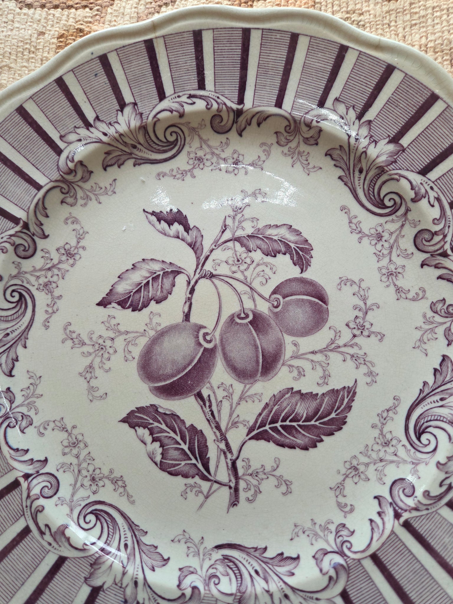 Beautiful Purple Transferware Ironstone Dinner Plates.