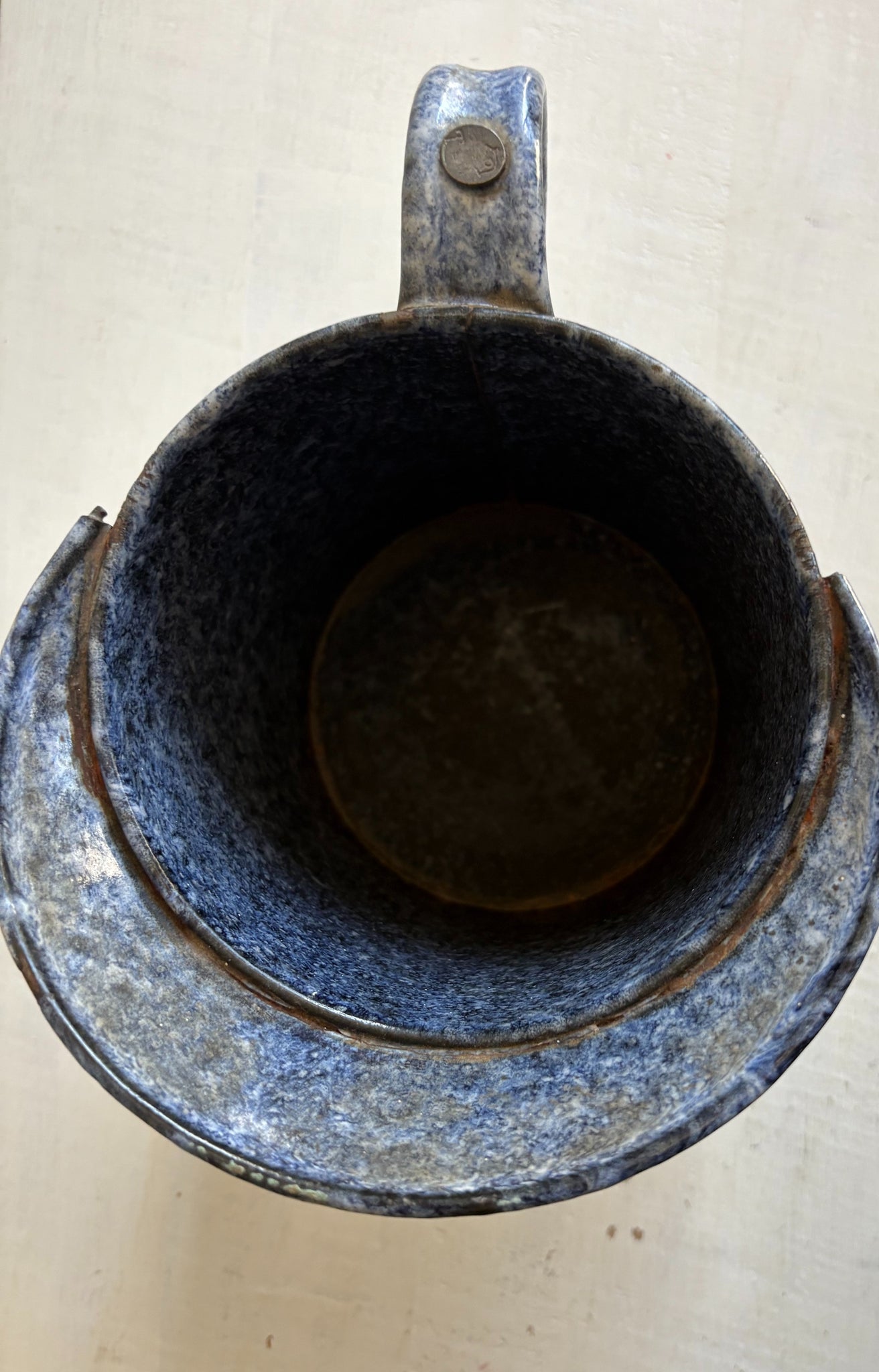 Antique 1/2 Gallon Blue Speckled Enamel Pitcher.