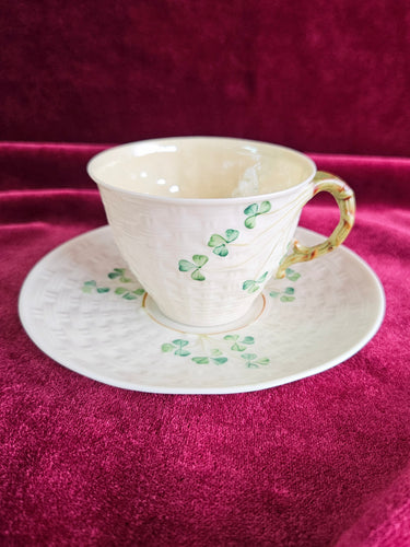 Belleek Pottery Ireland Shamrock Teacup and Saucer 42411