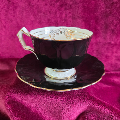 Aynsley Black and Gold Teacup and Saucer Bone China #001