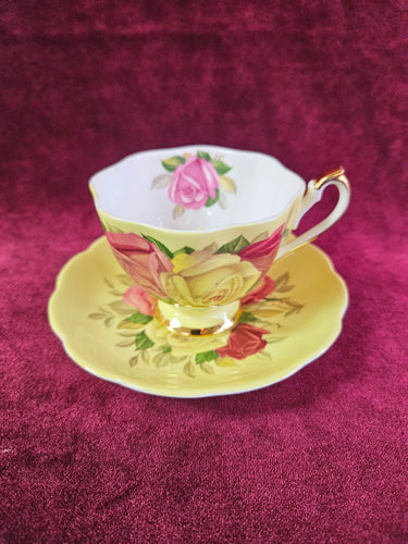 Yellow & Pink Rose Queen Anne Bone China Teacup & Saucer 42408