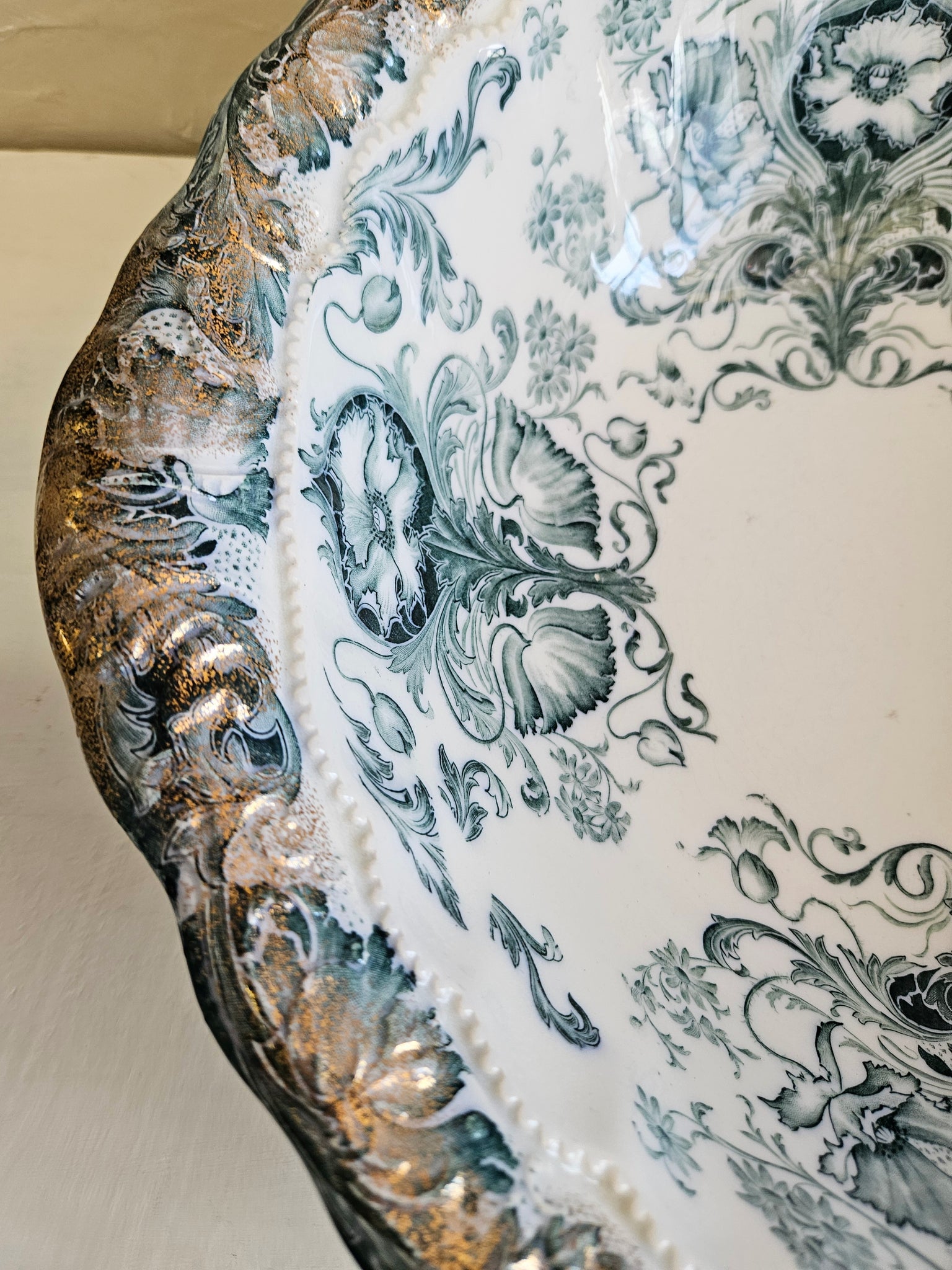 Antique Blue Transferware Ironstone Pitcher and Basin .