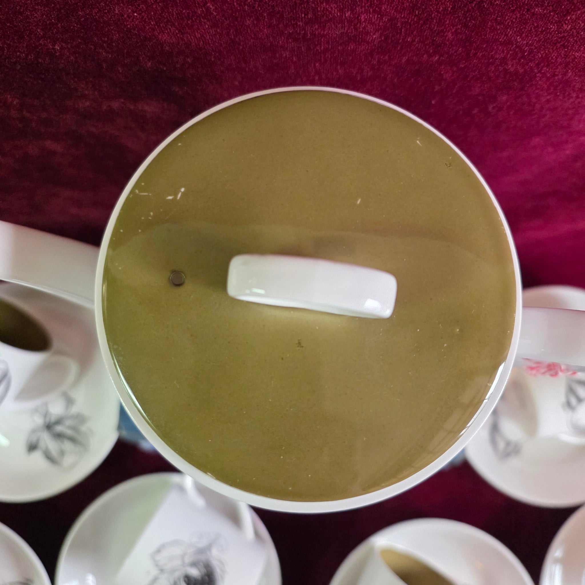 Teapot Lid has some color loss as shown in photos. No chips or cracks.