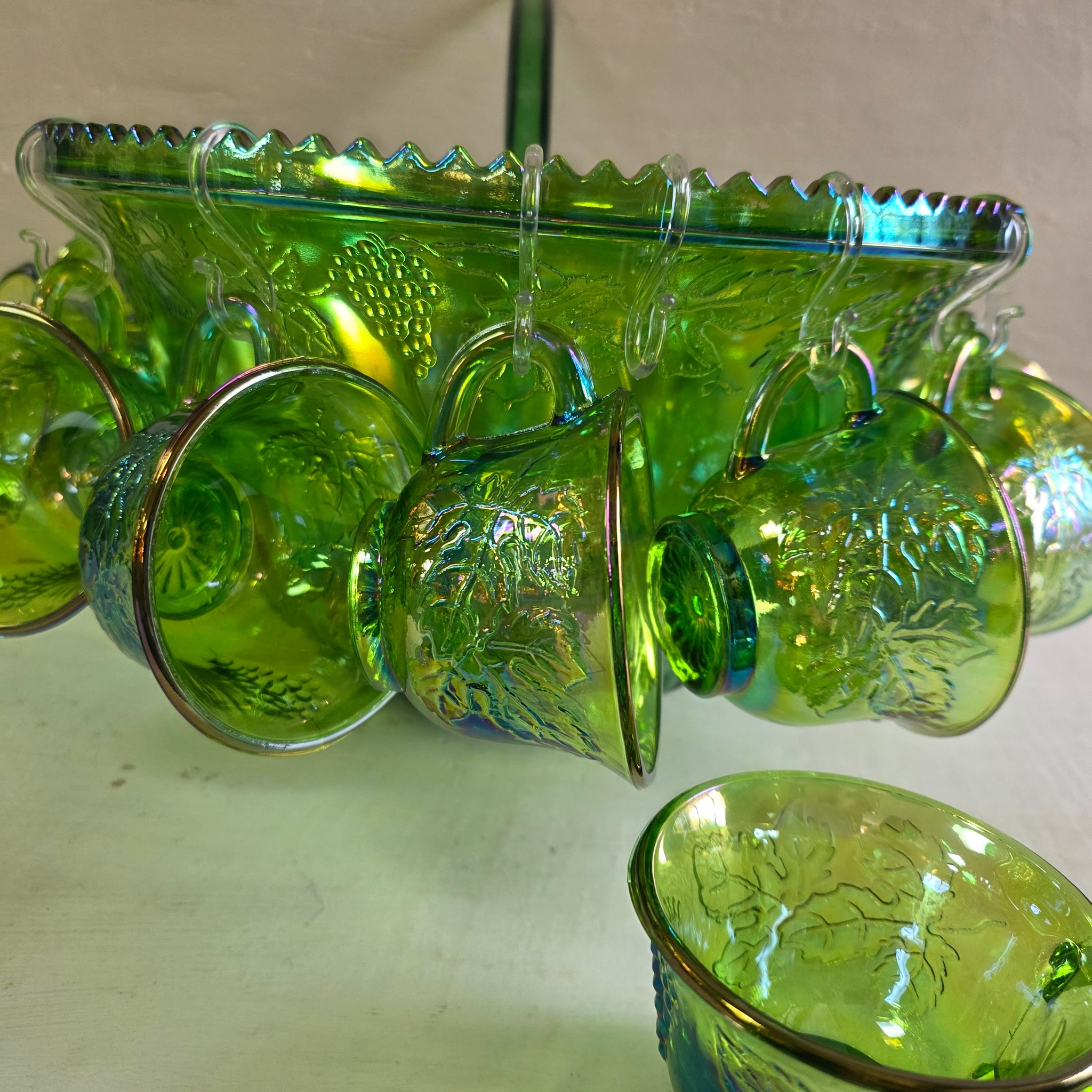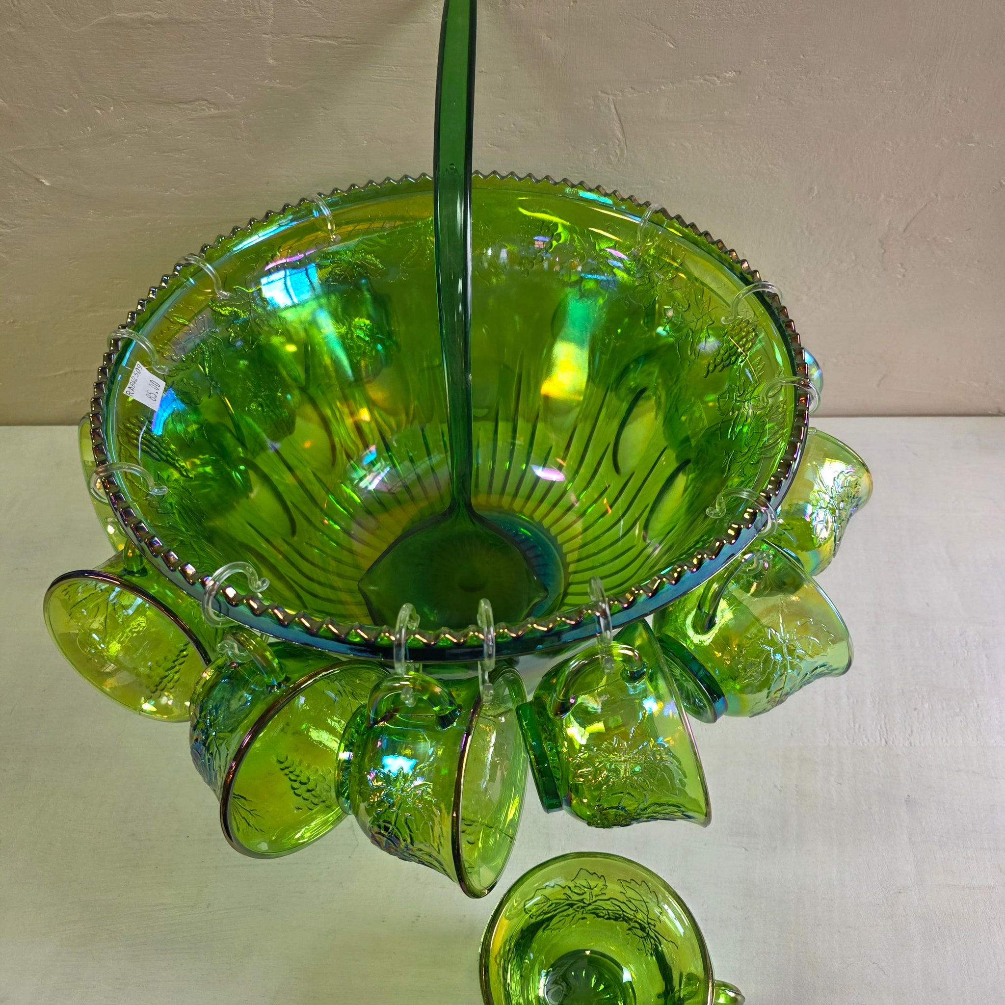 Green Carnival Indiana Glass Punch Bowl Set 42509