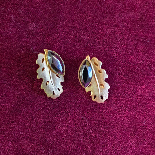 Vintage Clip On Earrings - Gold coloured leaves with black stones 42505001