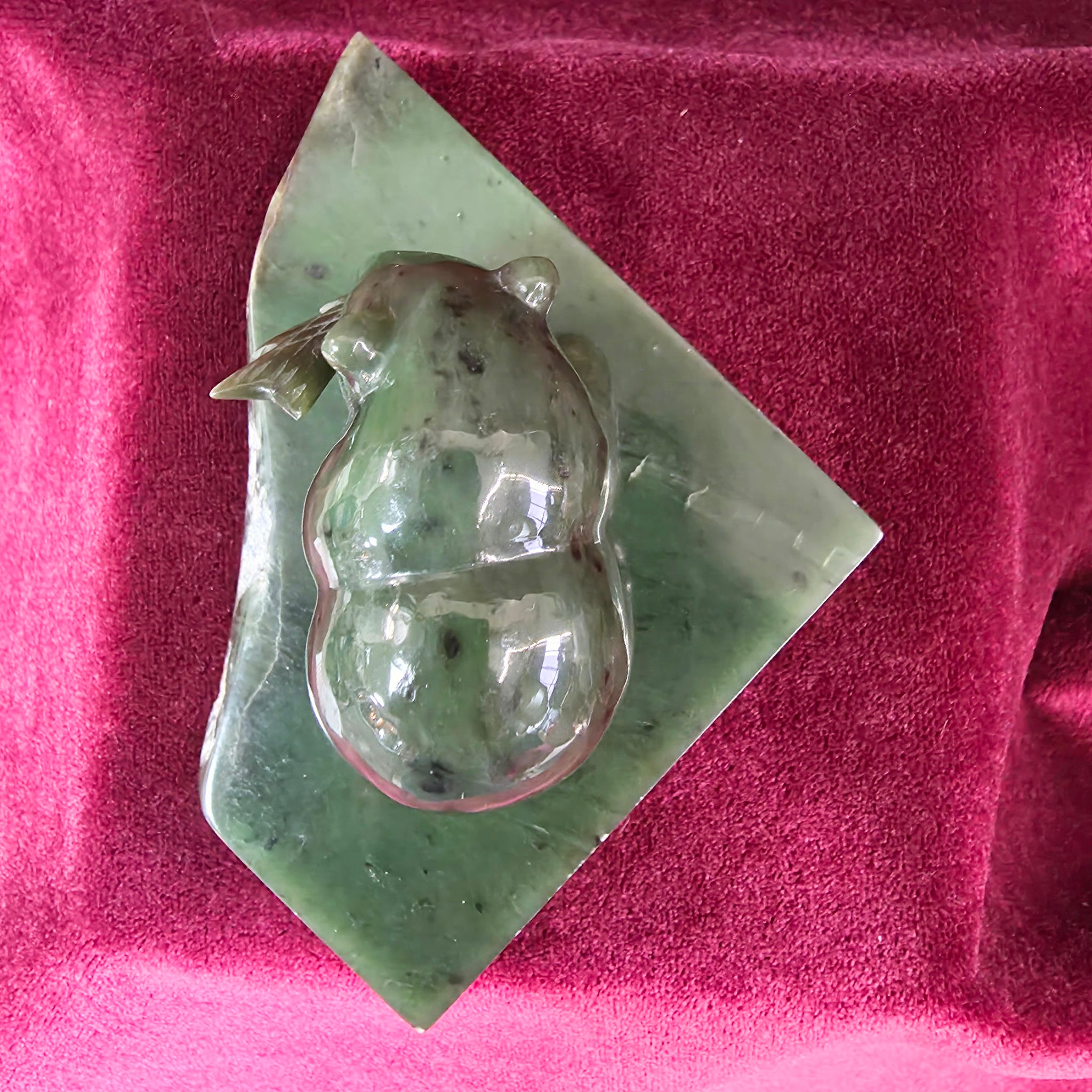 Fantastic British Columbia 2-piece Nephrite Jade Bear Carving on Jade Stand. Nice deep green colour