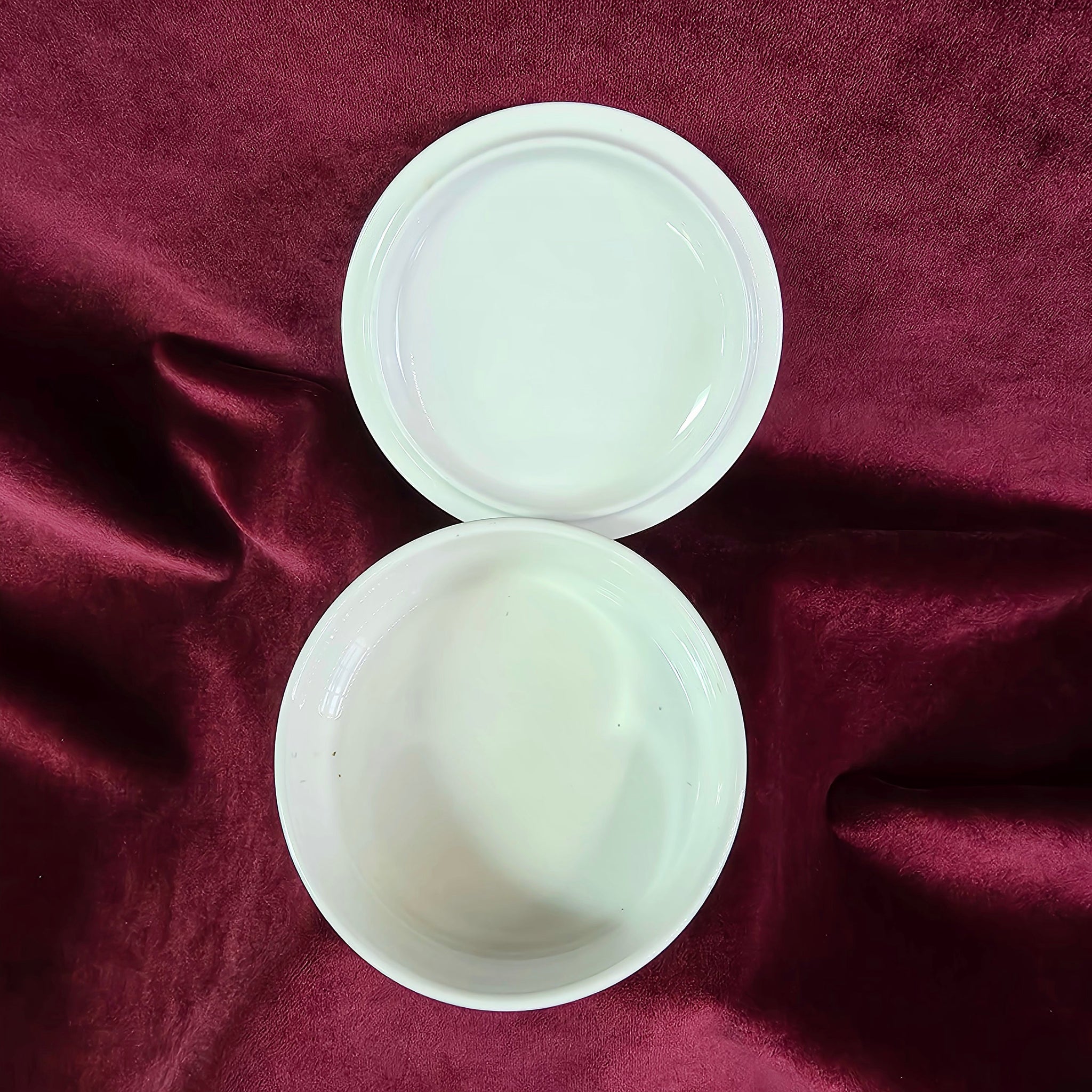 Round Porcelain Trinket Box with a winter sleigh & cottage scene on the top