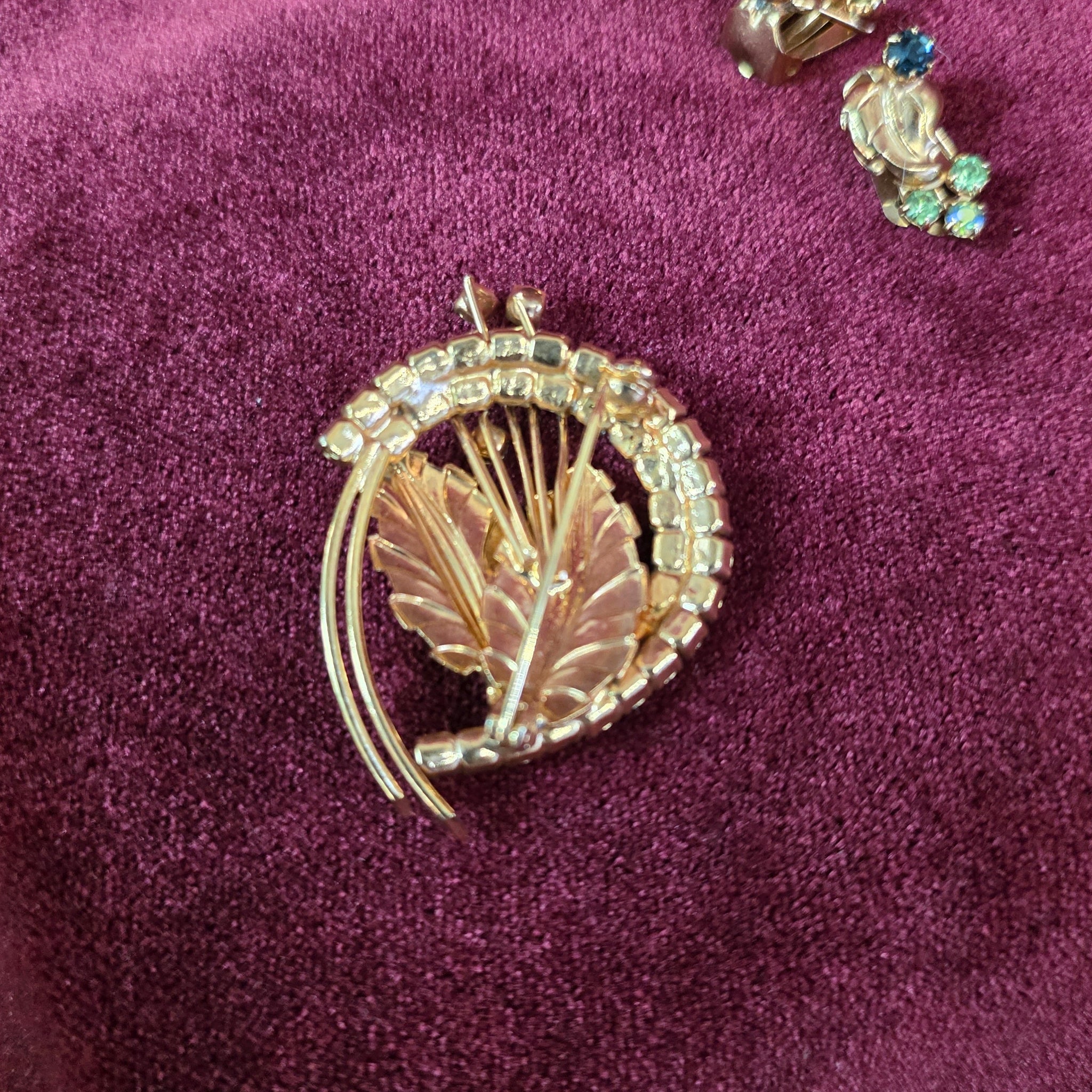 No wear on gold. No missing stones.Clasp is solid on brooch and earrings are nice and tight.