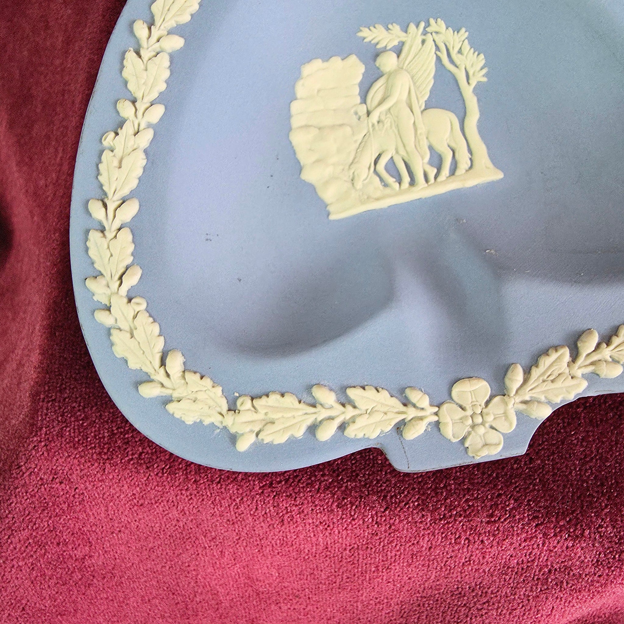 Wedgwood Blue Jasperware Heart shaped Ashtray Trinket dish with Pegasus Scene