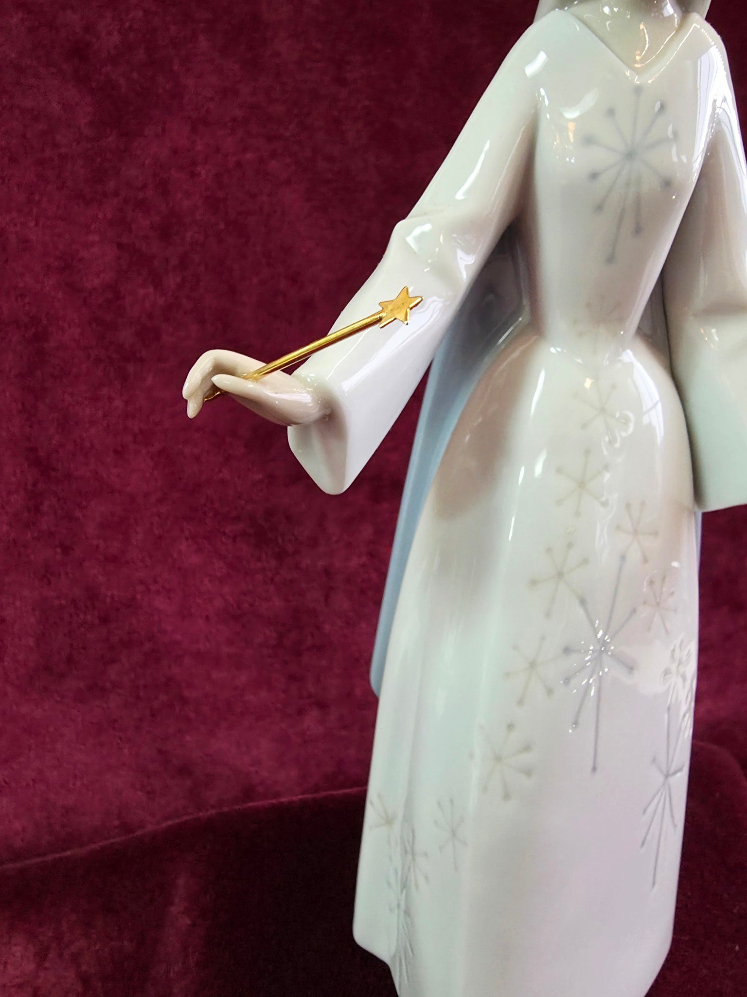 Lladro fairy godmother figurine with gold wand. Marked lladro & 4595 on bottom of figurine.
