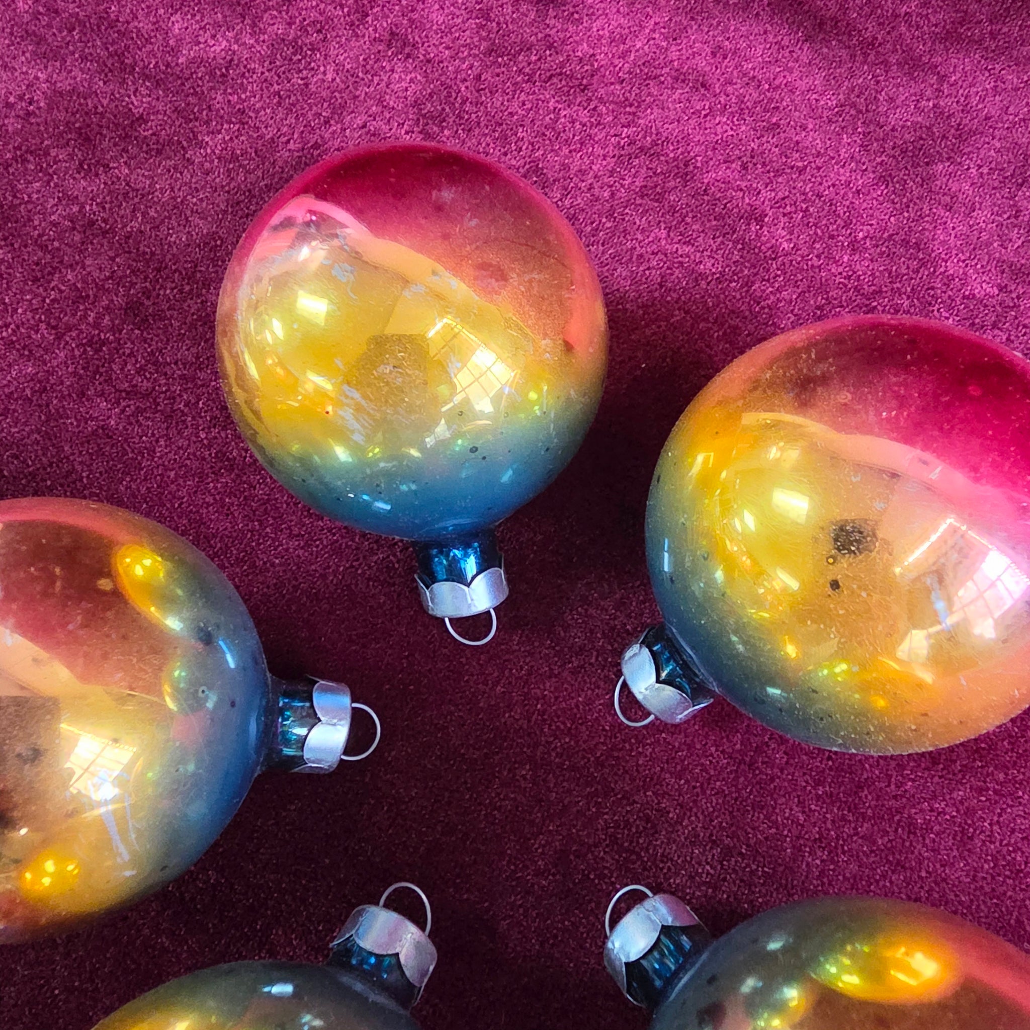 Set of 5 Vintage Glass Ombre Christmas Ornaments.